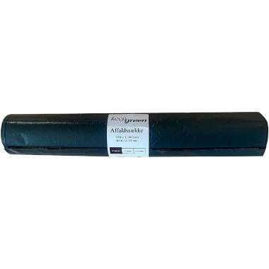 Bæredygtig og stærk affaldssæk i genanvendt plast, designet til effektiv affaldshåndtering i større beholdere. Denne KeepGreen-sæk rummer 100 liter og er udstyret med fals for nem påsætning og ekstra volumen. Den sorte farve giver et diskret og professionelt udseende, mens den 45 my tykkelse sikrer høj styrke og holdbarhed, selv ved tungt affald.