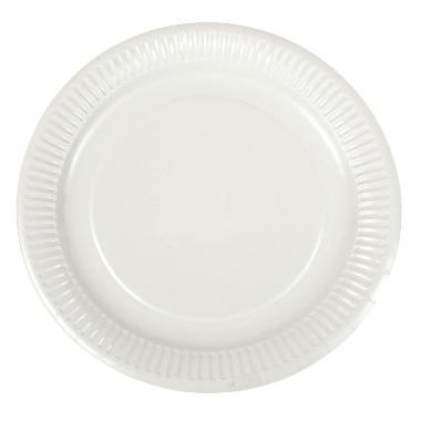 Hvid tallerken med coated overflade. Hindrer fedt og olie i at trænge igennem.